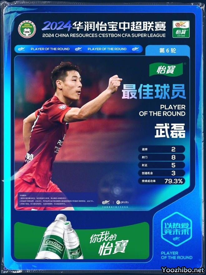 24直播网讯 北京时间4月17日,中超联赛官方微博宣布,武磊当选中超第6轮最佳球员。