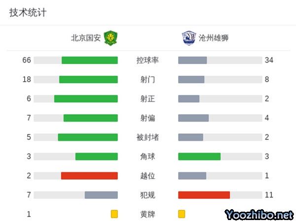 全场比赛结束,国安4-0战胜沧州雄狮。