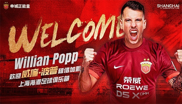 24直播网讯 北京时间7月15日晚,中超卫冕冠军上海海港官宣布,30岁的巴西前锋威廉-波普正式租借加盟,他也成为海港本赛季第6位外援。