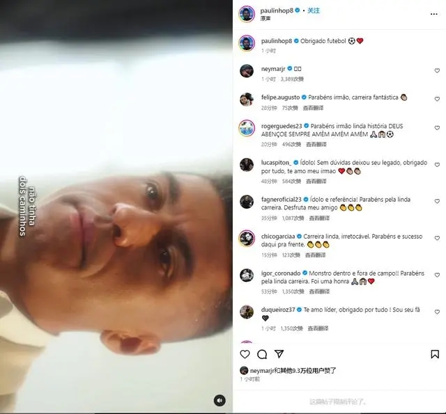 24直播网讯 36岁的中场悍将、前广州恒大功勋外援保利尼奥于今日正式宣布退役,结束自己的职业足球生涯。
