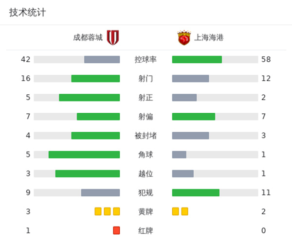 最终全场比赛结束,成都蓉城2-1上海海港。