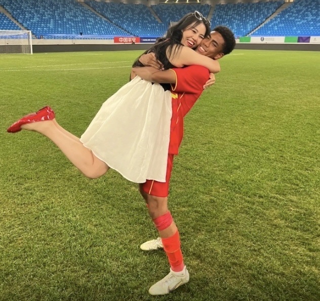 除了这张照片之外,张洪福母亲还分享了儿子与一些到场助威的小球迷友好合影的照片。照片中,长相酷似英格兰天才贝林厄姆的张洪福,羞涩微笑露出洁白的牙齿,身穿国字号战袍带着金光闪闪的金牌,脸上写满了为国征战夺冠后的自豪之情。