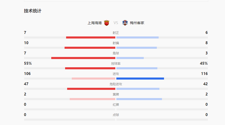 24直播网讯 :北京时间8月18日中超联赛第23轮,上海海港主场对阵梅州客家。上半场,双方门将屡献神扑,补时阶段武磊破门,但因越位在先被吹无效;下半场,第67分钟,梅州精彩配合,科特尼克破门,第90分钟,奥斯卡造程月磊乌龙,最终上海海港1-1梅州客家,连续两轮联赛不胜。