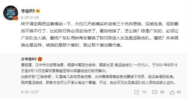 比如陈巧珠必须去治疗了,最后给换了,怎么换?陈是广东的,必须让广东队出人换,最终广东队用钟秀东替换了陈巧珠进入女足奥运联合队。懂吧?未来再换也是这样,被换的是那个省的,就让那个省出替代者。