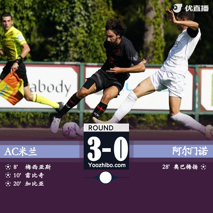 24直播网讯:北京时间7月13日,米兰在内洛训练基地与来自第五级别联赛的业余球队莱米诺-阿尔门诺进行了他们的首场季前热身赛。本场比赛分为三节,每节的长度为20分钟。第8分钟,梅西亚斯接阿德利的传球首开记录;2分钟后场上队长雷比奇远射破门将比分改写为2-0;第一节比赛即将结束时加比亚利用角球的混战机会再进一球将比分锁定为3-0。