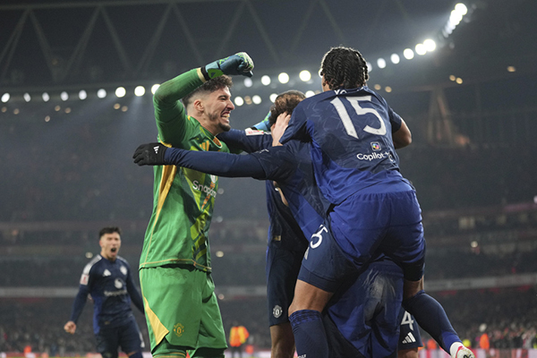 24直播网讯在北京时间1月13日进行的足总杯第3轮一场焦点战中,曼联在客场超过60分钟少打1人情况下顽强将阿森纳拖到点球大战,并且最终总比分6-4淘汰对手,晋级32强。